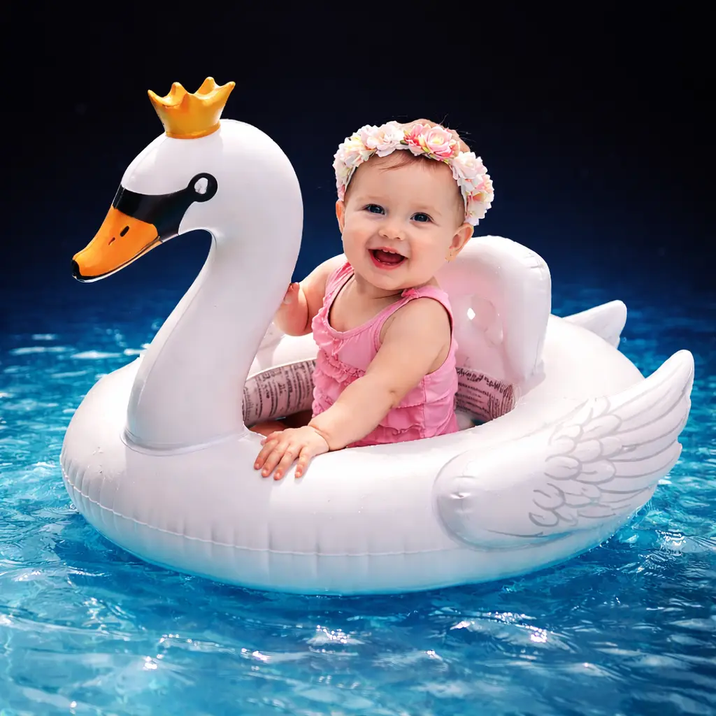 Fabricado con material resistente y suave al tacto, es seguro para la delicada piel del bebé y fácil de inflar y desinflar. Su diseño en forma de cisne, colorido y adorable, convierte cada momento acuático en una experiencia divertida y memorable.